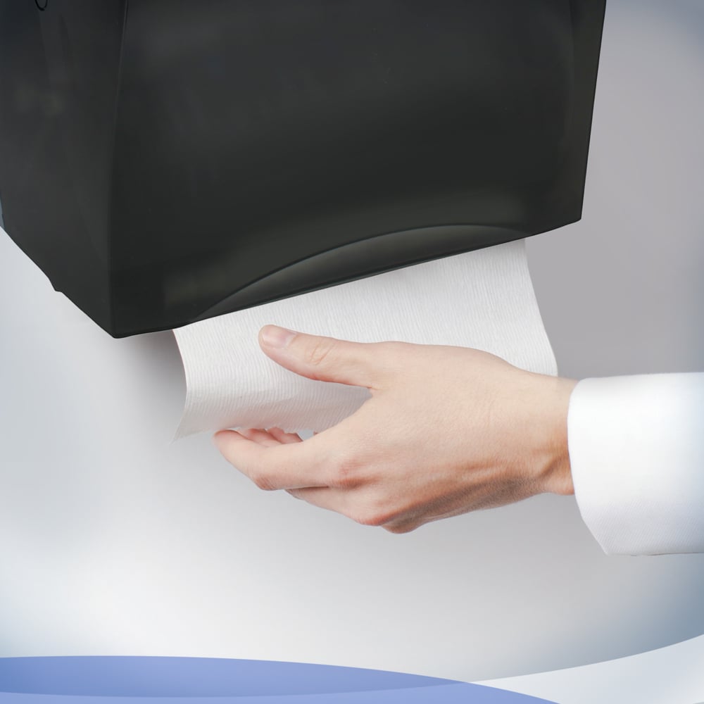 Reduce maintenance time and run-outs with a high capacity washroom towel system. The Kimberly-Clark Professionalâ„¢ Hard Roll Towel Dispenser is a reliable and efficient hand-drying system that is perfect for your workplace, retail location, office or high-traffic location. This manual roll towel dispenser comes in various color options and configurations and is compatible with 1.5″ or 1.75″ core roll towels, depending on the model. This wall mount dispenser features a durable and sleek design, so it will go with any washroom decor. Kimberly-Clark Professionalâ„¢ Hard Roll Towel Dispensers are compatible with Kleenex® and Scott®Brand Hard Roll towels. After all, you have better things to think about than changing your business’ paper towel rolls!
