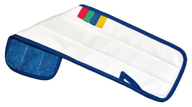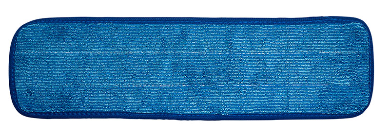 M-Fibre Pads-18″ Blue, The MicroPads are the next generation in microfibre cleaning. Made from ultrafine microfibers, they are much more effective than the traditional mops. The pads feature a durable velcro backing that attaches securely to the frame and can be used in wet or dry applications. Available in 4 different colours of trim, you can use them in a colour-coded system to help reduce cross contamination. Pair this Microfiber Flat Wet Mop Pad with the Aluminum Velcro Flat Mop Frame to easily clean surfaces. Make sure to use the Duo-Chamber Mop Bucket with Roller Wringer to remove excess water from the mop and keep your floors streak free.